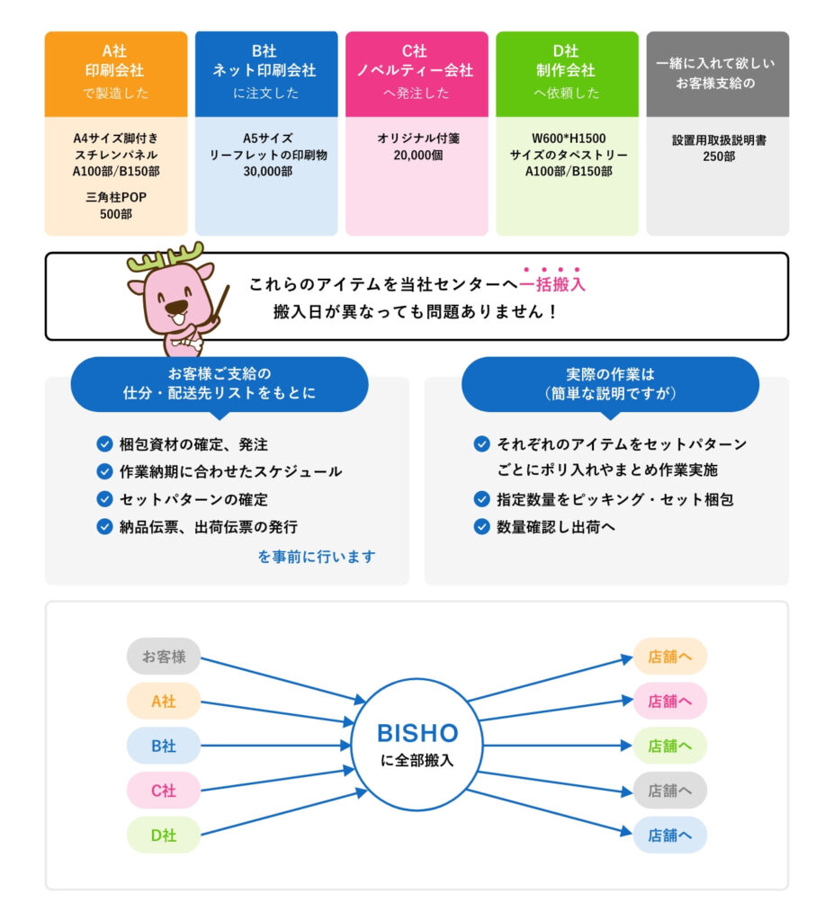 いろんなところから資材を注文したけど…それをセットして送りたいんです…