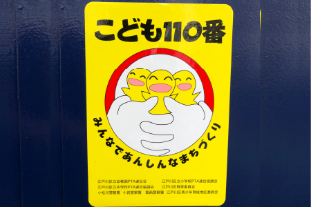子どもたちが身の危険を感じたときに避難したり、救いを求めたりできる緊急避難場所として「子ども110番」に参加しました。江戸川京葉センター入口に「子ども110番」防犯ステッカーを掲示し、安全に保護できるようにしています。