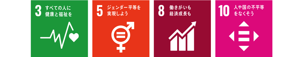 事業とそれにかかわる従業員、お客様へ。SDGsの達成に貢献するため、活動テーマを定めて取り組みを進めていきます 。