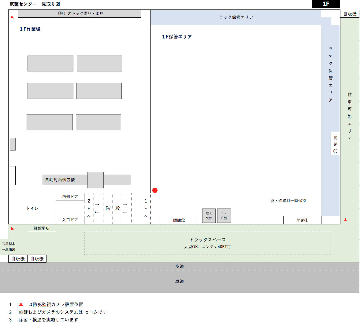 2020.11.13 江戸川京葉センターってどんな施設? 弊社“江戸川京葉センター”は江戸川区中央にございます。 そんな京葉センターをちょっとだけご案内いたします。 ● 加工・アッセンブリ作業 ● 梱包発送作業 ● 保管・管理 ● 大型車両搬入可能 ● コンテナは条件あり 株式会社美翔 江戸川京葉センター 〒132-0021 東京都江戸川区中央1-22-10 Tel : 03-5879-3293 ジャーナル一覧へ戻る