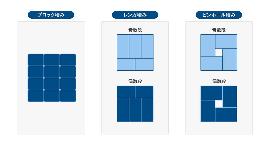 このほかにも細かくたくさんの積み方があるようですが美翔では3種類の積み方を用いています。