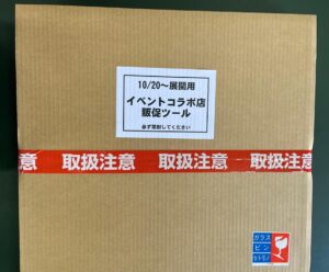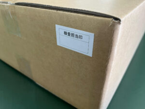 どんな風に貼られているでしょうか。通常は1箱に対して短側面もしくは長側面に1か所貼りを行いますが。倉庫への納品時などは、短側・長側面2か所への貼付指示があったり天面への貼付もあったりします。写真・実際に貼り付けているイメージは下記のようなタイプです。