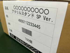 私たちが日々使用しているラベルでやはり一番利用頻度の高いものがカートンラベルです。これは段ボール箱に「商品名」「コード」「入り数」などを表示するための言わば目印のようなものです。私たち梱包業や倉庫業にとってこのラベルはとても大切な役割を果たします。毎日たくさんの荷物が入ってくると中身をその場で1つ1つ確認することは困難です。ですから外装で確認できることが絶対的に必要なのです。特に個の箱にはいくつ入っているかは検品を行う上で最重要なのです。