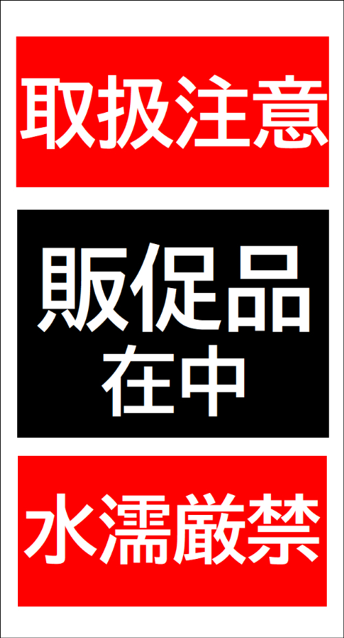 ![]() | 破棄厳禁 | 宅配便、店舗や大型商業施設に搬入するときなど多くのスタッフが介在するような場所への納品時 | 無償対応 |