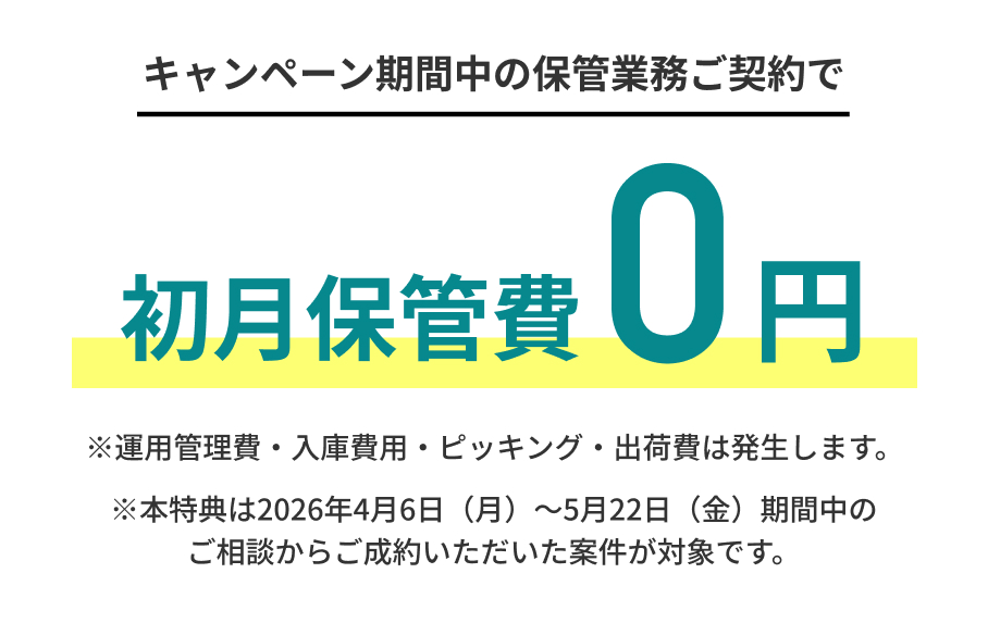 期間中のご成約で保管業務の初月保管費0円特典が適用されます!