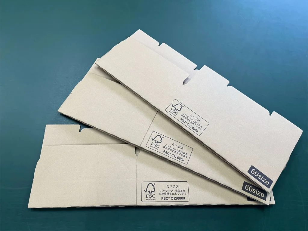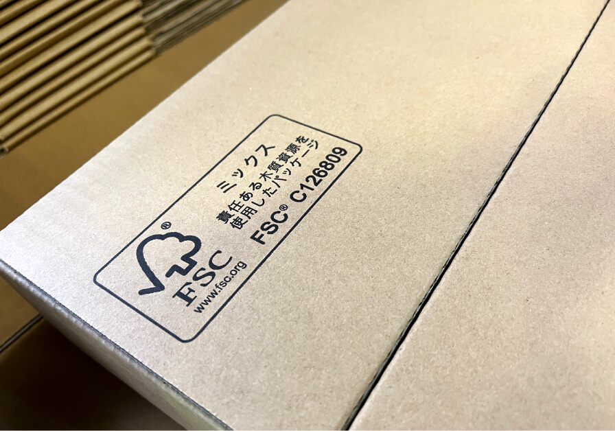 2020年より順次FSC認証の段ボールを導入しています。箱表面にFSCマークの印字をしております。